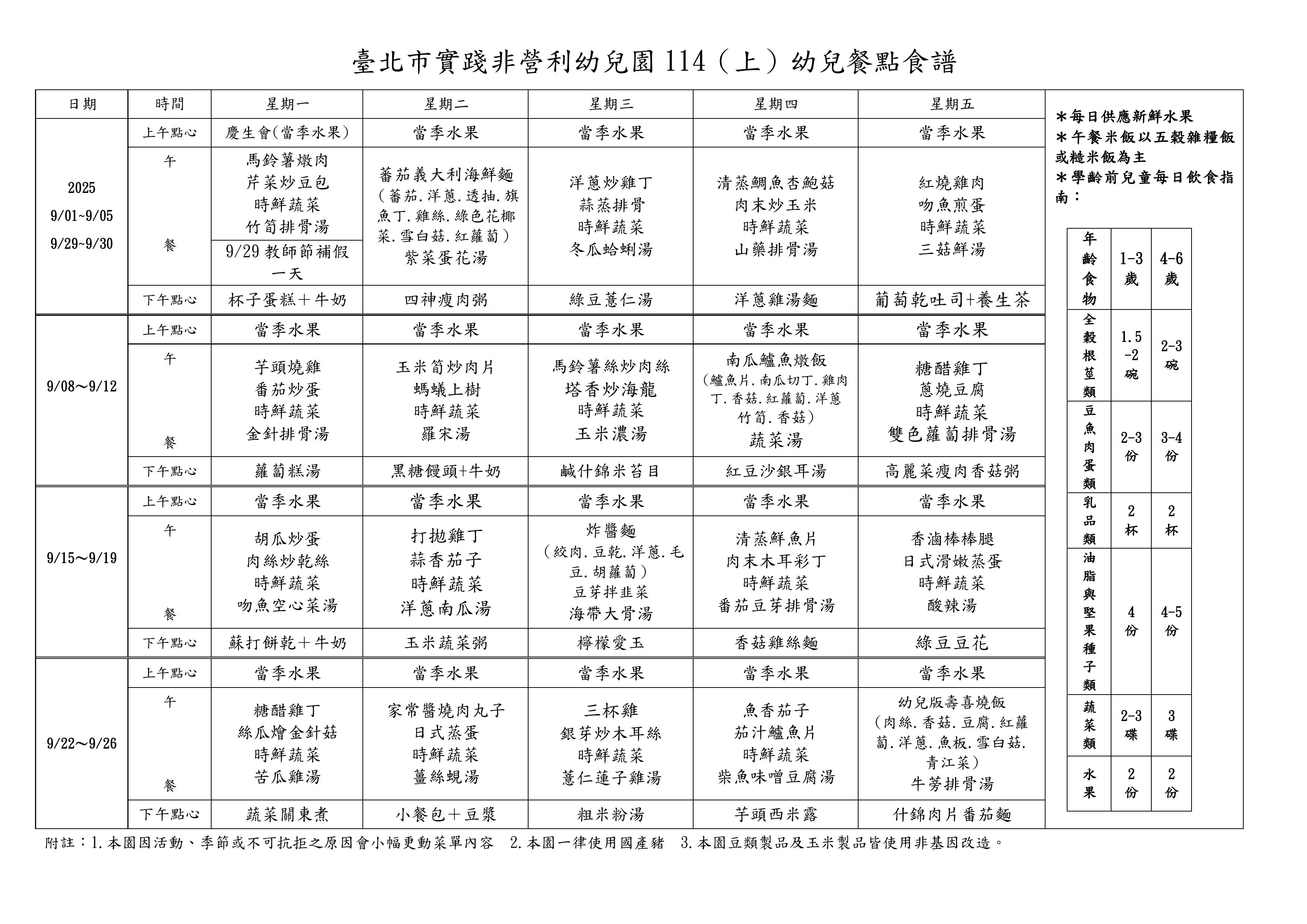 114年9月餐點表