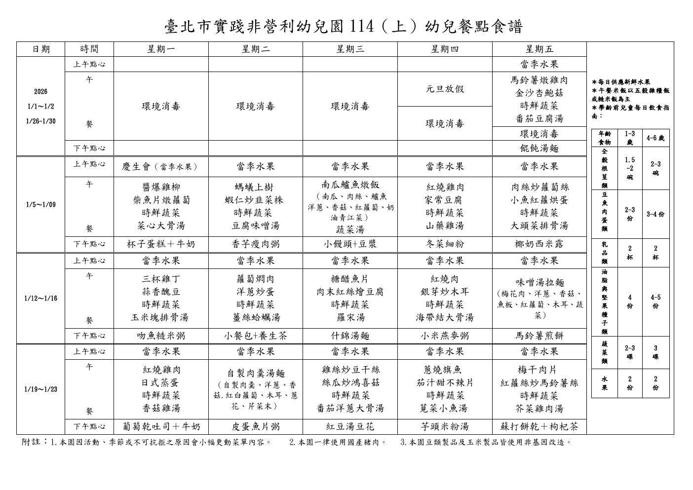 115年1月餐點表